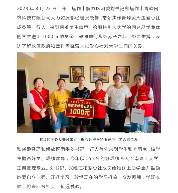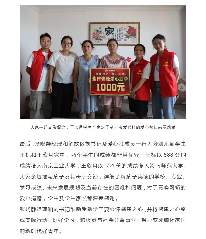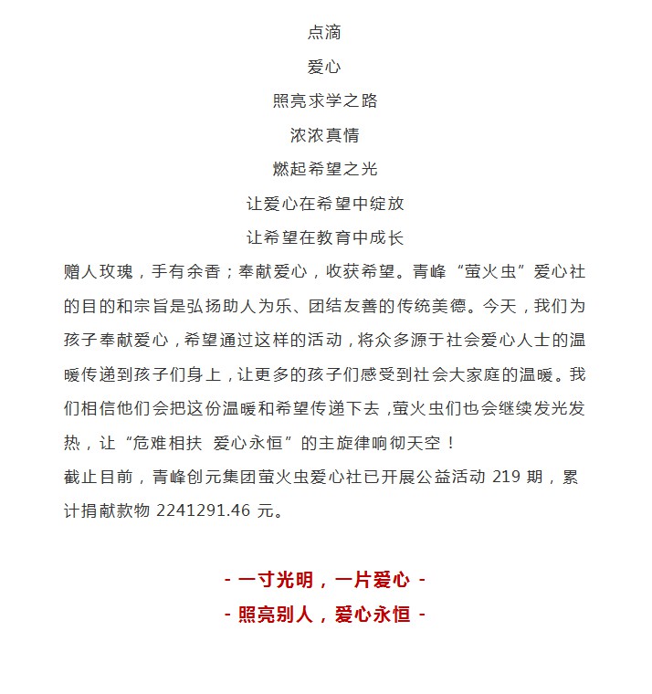 青峰助學(xué) 傾心筑夢--青峰創(chuàng)元集團(tuán)螢火蟲愛心活動第219期