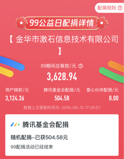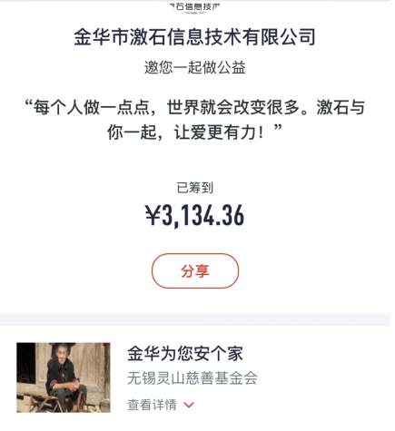 金華市愛一起公益協(xié)會在2016年4月份由11位發(fā)起人注冊登記,也是金華市2016年以來***家直接注冊登記的公益社會組織,協(xié)會一直致力于農(nóng)村孤寡老人的關(guān)愛項目,今年的9月9日騰訊公益日,金華愛一起協(xié)會再一次發(fā)起“金華為您安個家”項目的捐款,金華市激石信息技術(shù)有限公司,助力項目的捐款行動,***時間進(jìn)行項目的的號召與呼吁,螢火蟲愛心社捐出3000元,有一些小伙伴另外又單獨(dú)進(jìn)行了愛心支持。