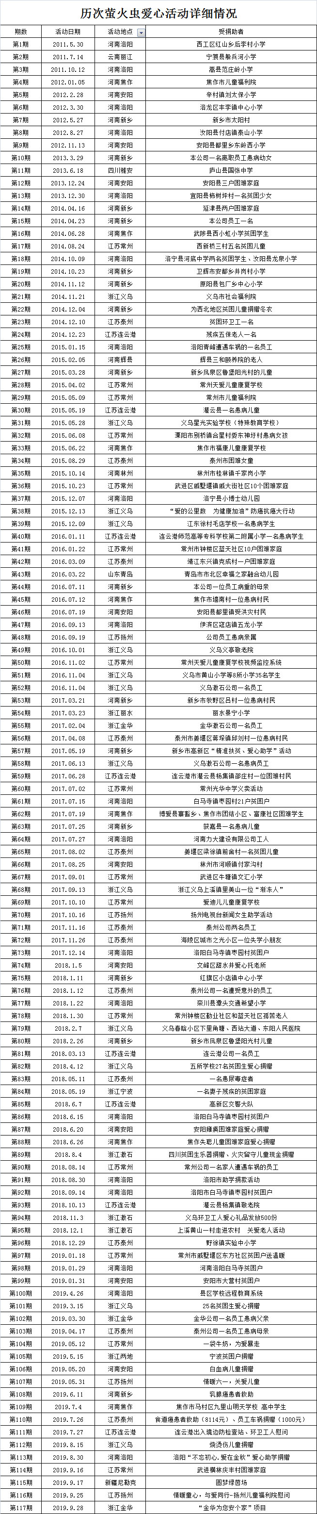 以下為歷次螢火蟲愛心公益活動明細(xì):