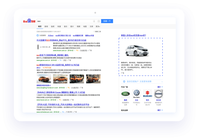 您可以在用戶興趣階段,通過在搜索結(jié)果頁右側(cè)強(qiáng)勢(shì)展現(xiàn)品牌廣告,增加品牌露出。
