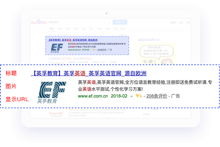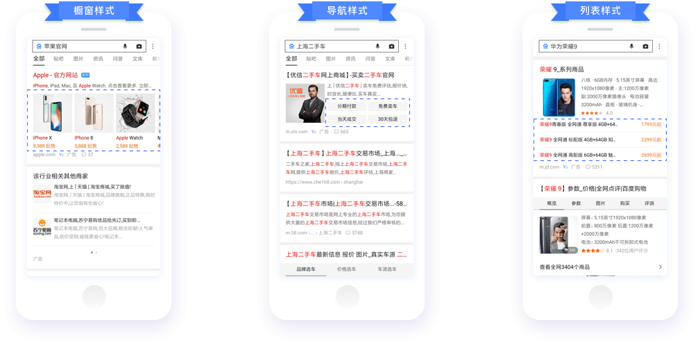 您可以在用戶轉(zhuǎn)化階段,將您的產(chǎn)品和服務(wù)信息前置,以結(jié)構(gòu)化圖文的樣式展示在搜索結(jié)果中,強(qiáng)勢(shì)促進(jìn)品牌宣傳和銷售轉(zhuǎn)化;
